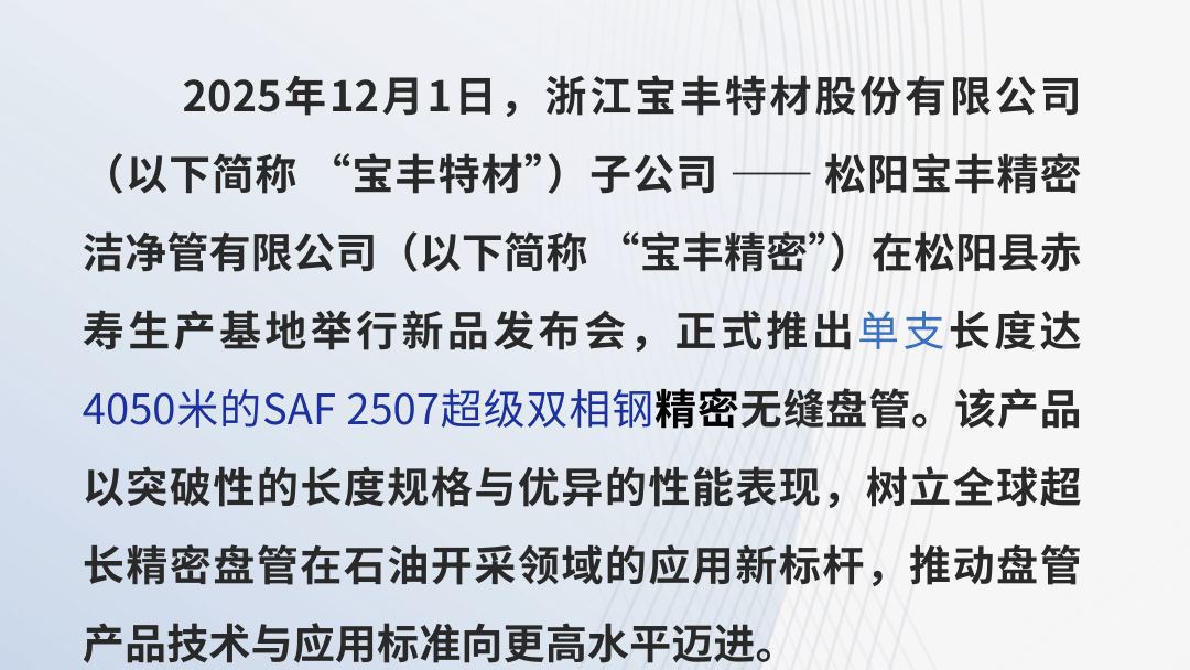 乐鱼手机站登录入口-乐鱼online(中国)特材发布单支超4000米超级双相钢2507无缝盘管